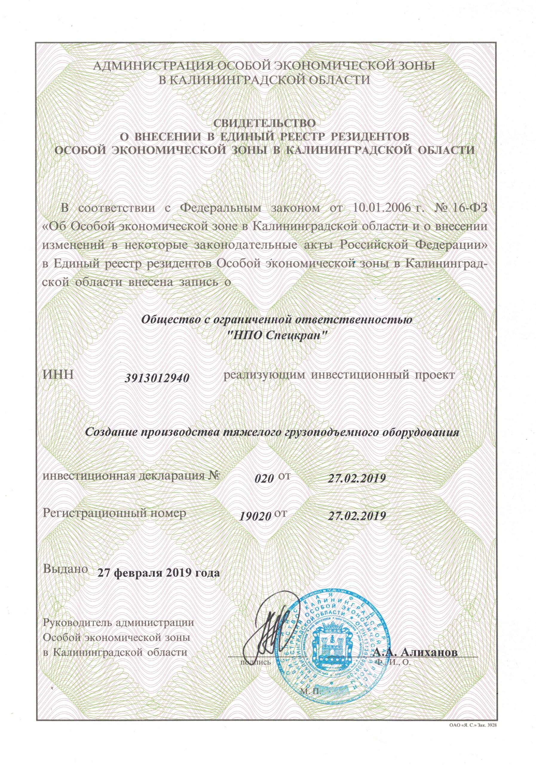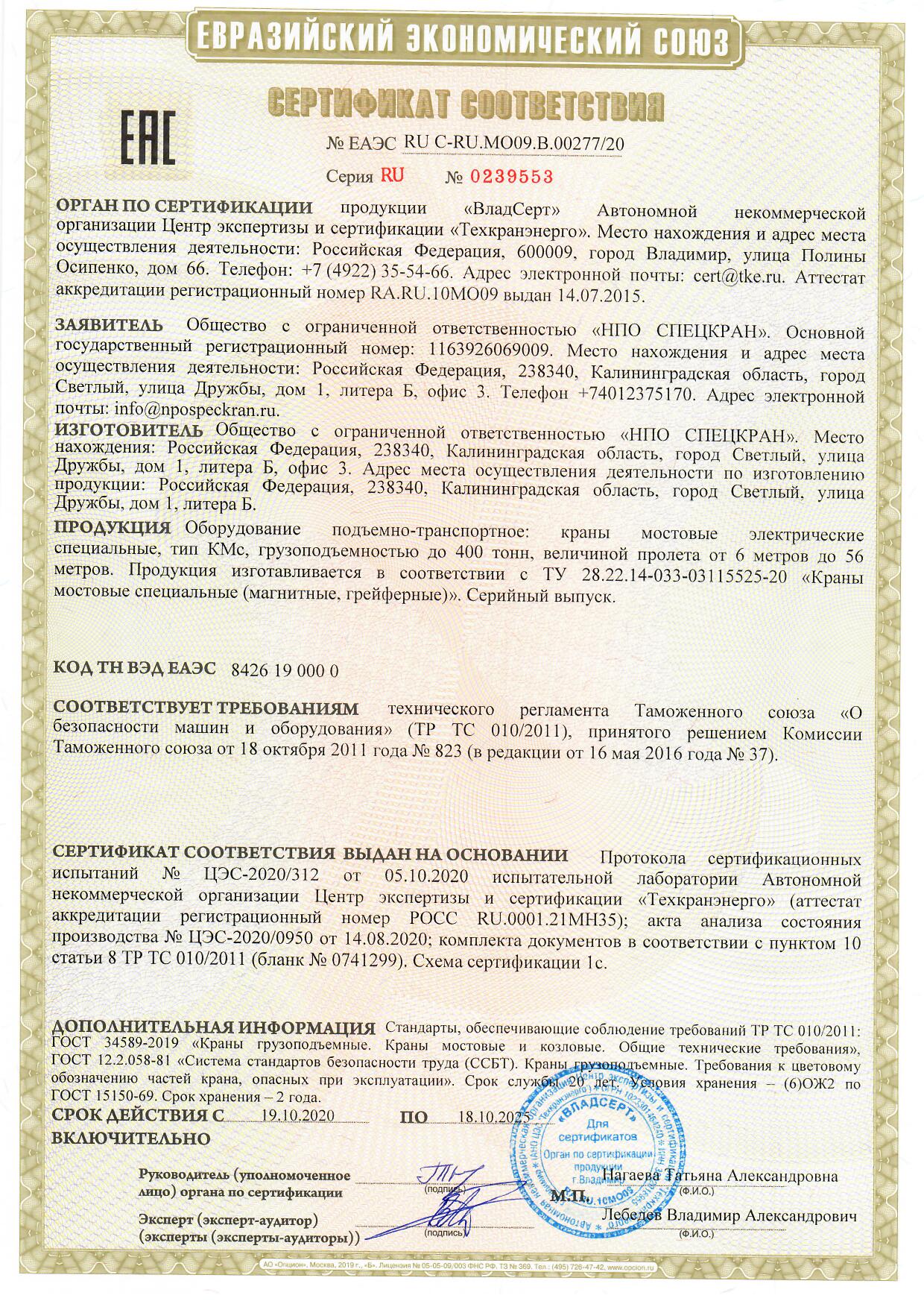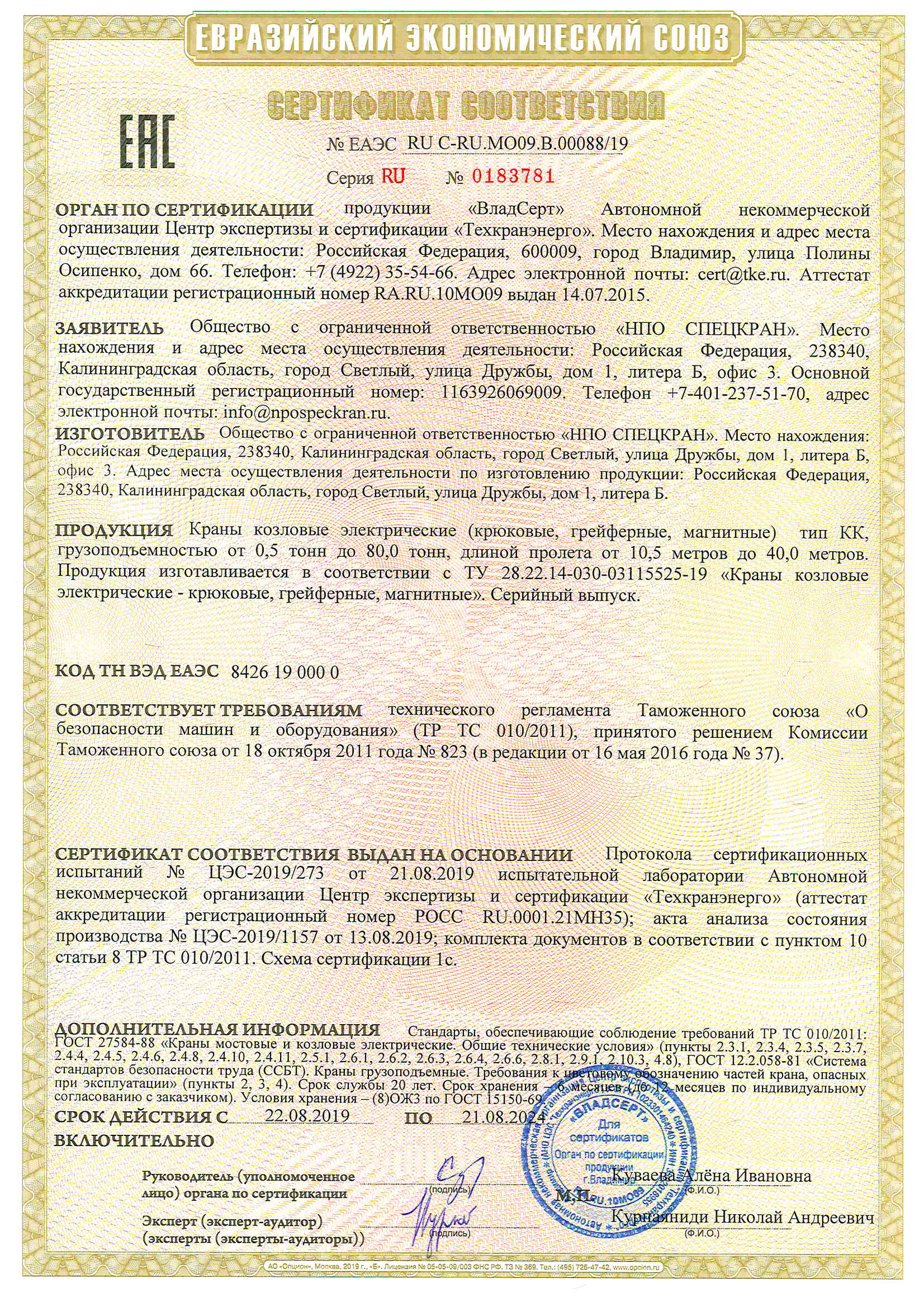 Speckran’s activities are aimed at fully satisfying the interests of the Customer, including by expanding the range of manufactured equipment with special cranes – this is the main promising area of the company’s activities.