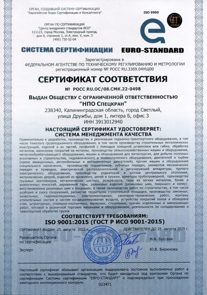 Деятельность компании Спецкран направлена на полное удовлетворение интересов Заказчика, в том числе путем расширения линейки производимого оборудования специальными кранами – это является основным перспективным направлением деятельности предприятия.
